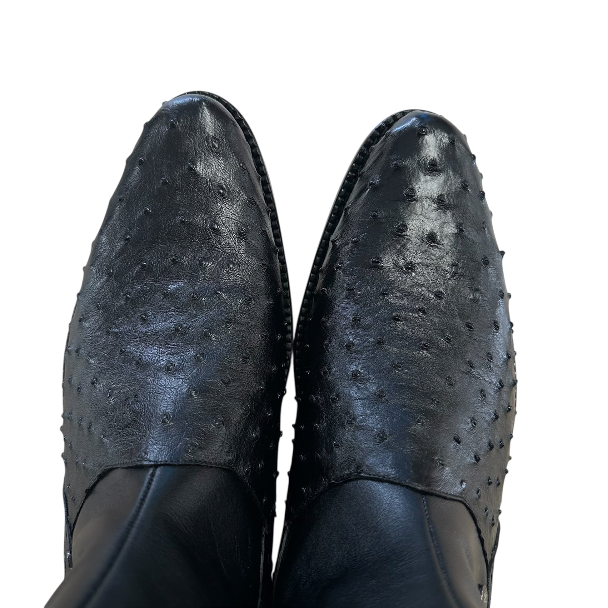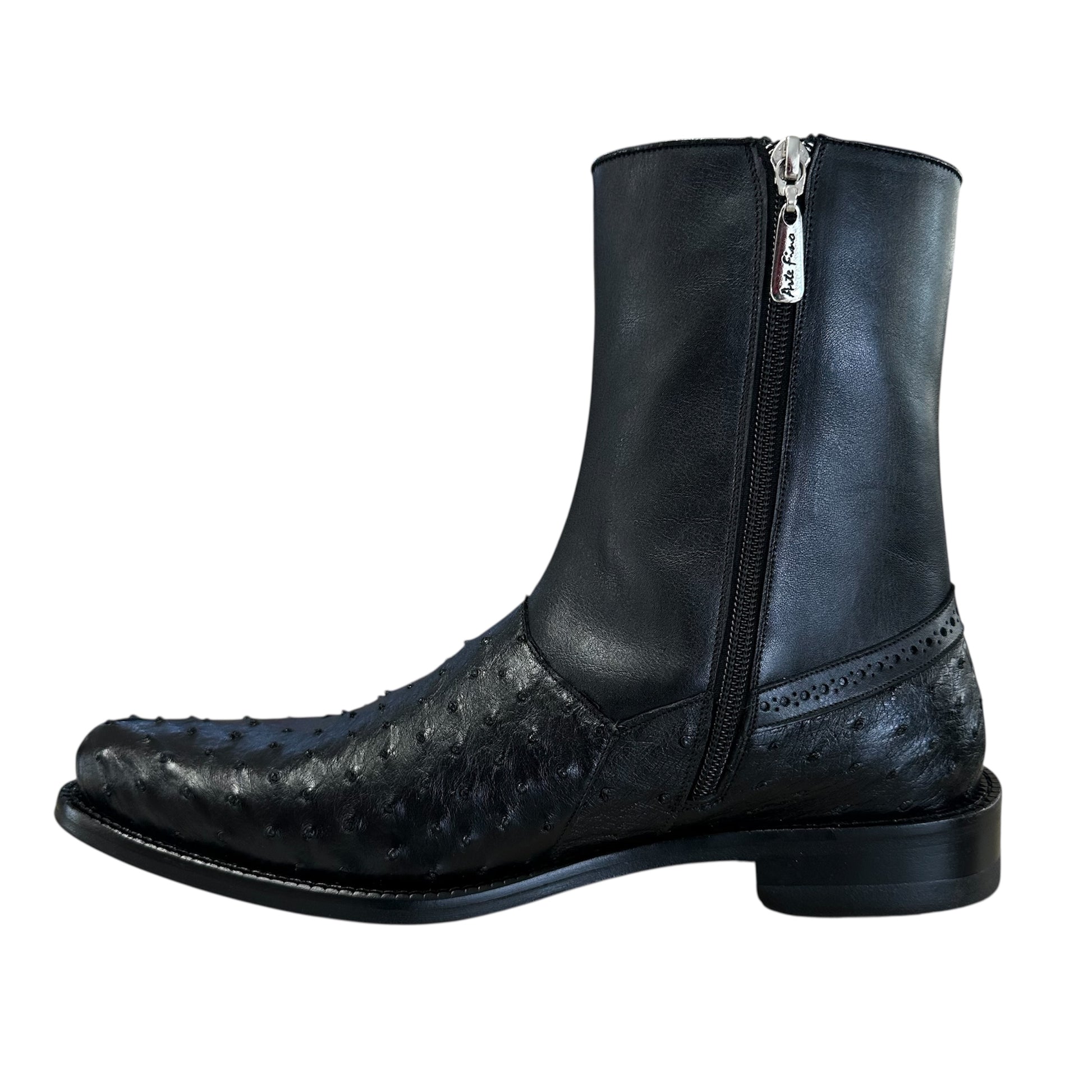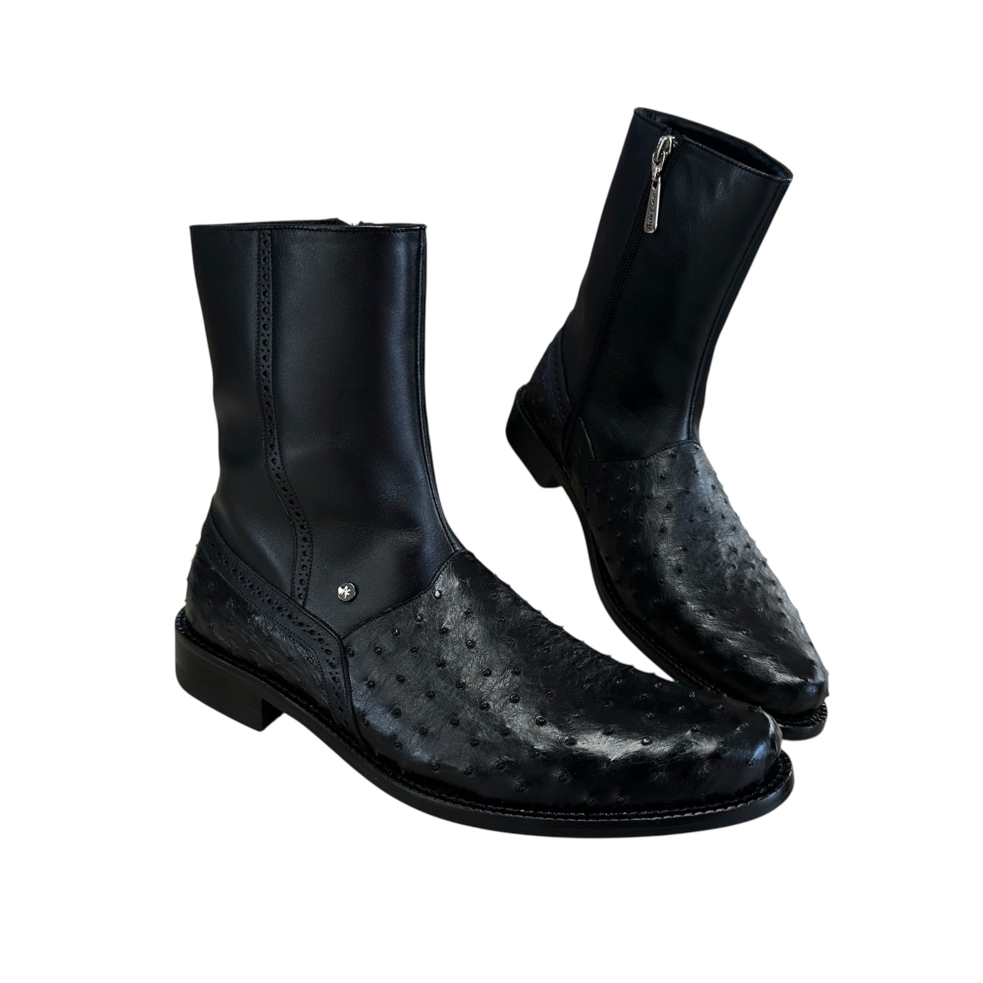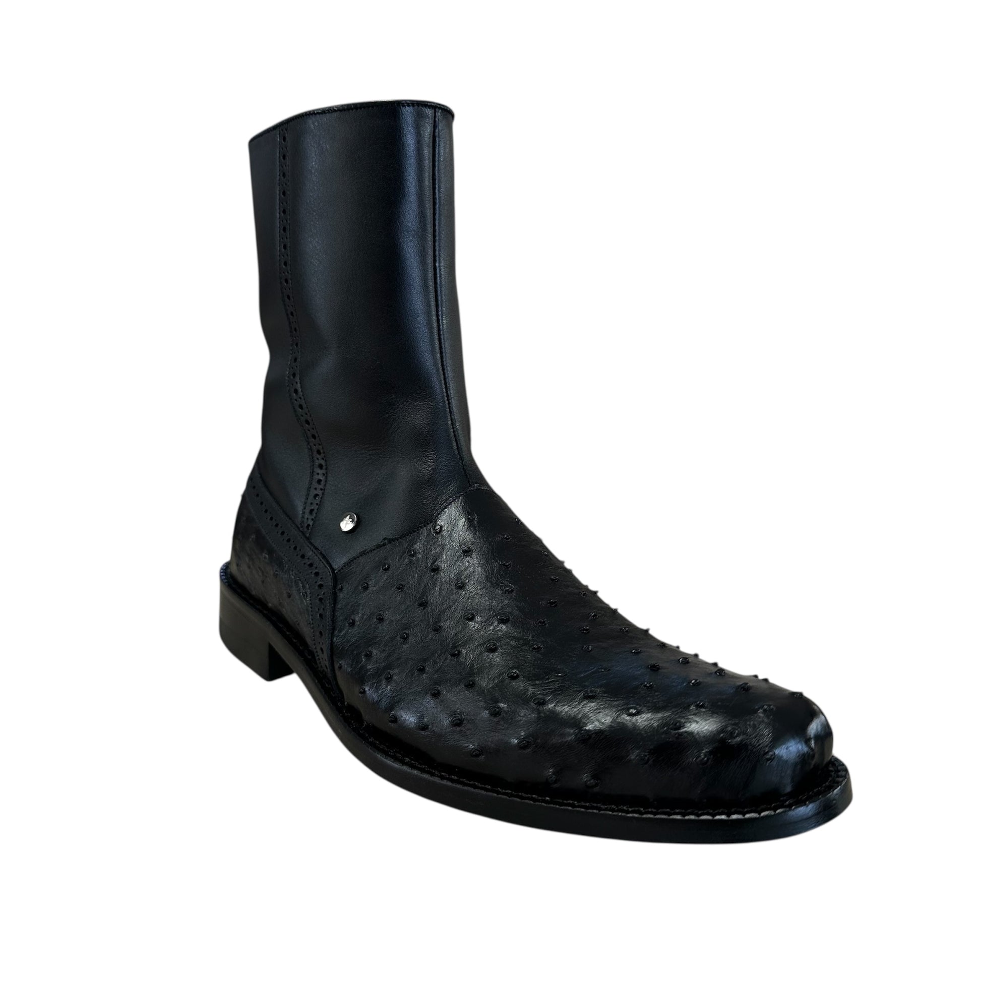 Confeccionado con piel auténtica de avestruz negra, el botín Olimpo ofrece durabilidad y un estilo inigualable. Su diseño exclusivo garantiza comodidad y elegancia, ideal para quienes buscan calidad superior en calzado artesanal. Perfecto para complementar tanto atuendos formales como casuales, este botín combina resistencia y sofisticación en cada paso.